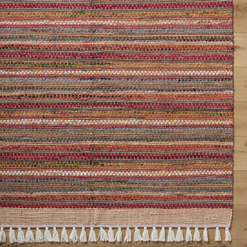 Step into the world of bohemian global charm with our Halifax handmade rug. Originating from the skilled artisans in India, this hand-loomed piece is made entirely of cotton, ensuring softness underfoot and a unique texture that adds depth to your space. With its eye-catching fringe detail, it creates an instant focal point for any room. This rug is designed without a pile for easy maintenance and optimal durability, making it perfect for high-traffic areas. To maintain its beauty, simply spot clean with a dry cloth as needed. For enhanced longevity and comfort, we recommend pairing it with a rug pad. Add this rug to your decor to bring an international touch of style right at your doorstep!
